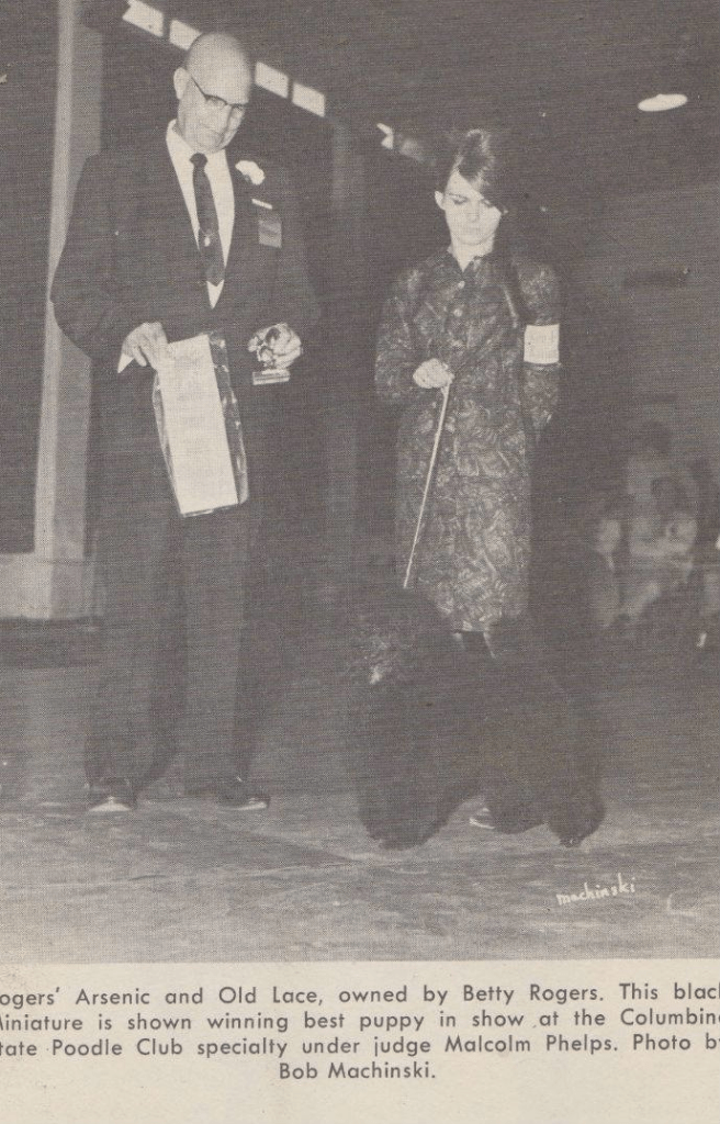 Below is another of my grandmothers breed by’s Rogers Arsenic and Old Lace. She is being awarded Best Puppy at the Poodle Specialty by Malcolm Phelps. The handler is Donna Rogers.